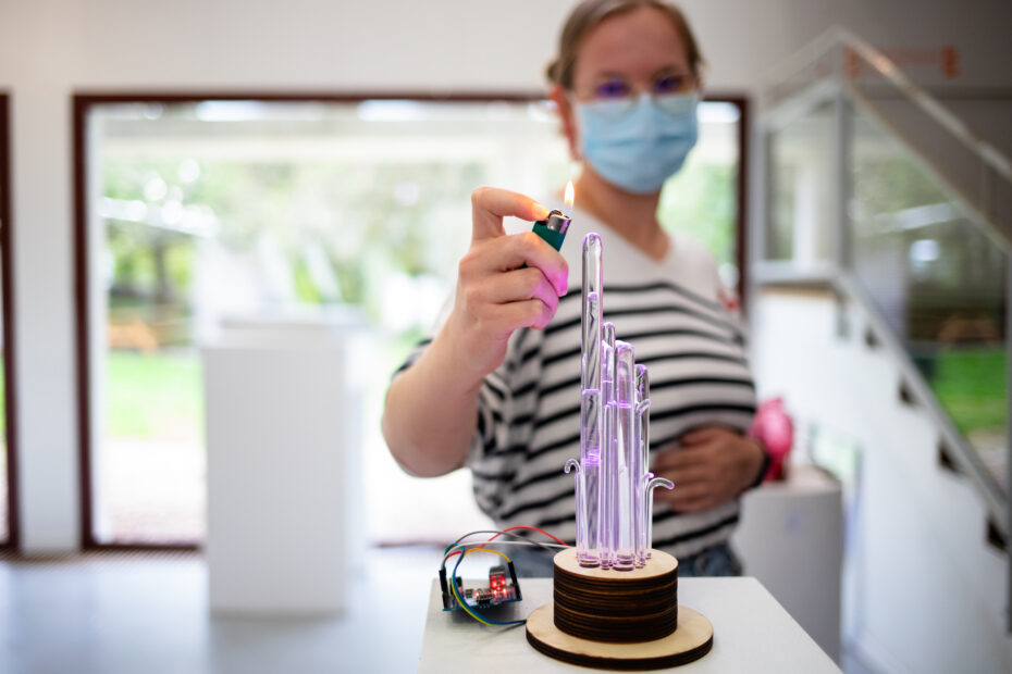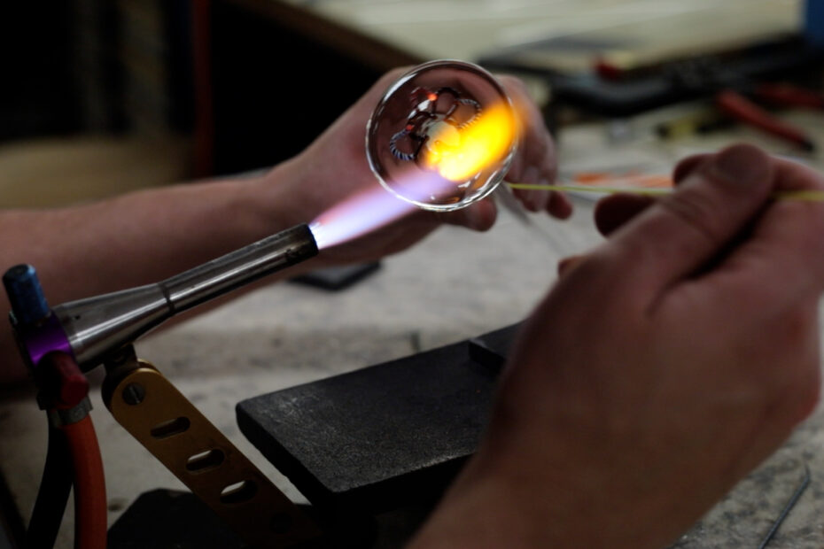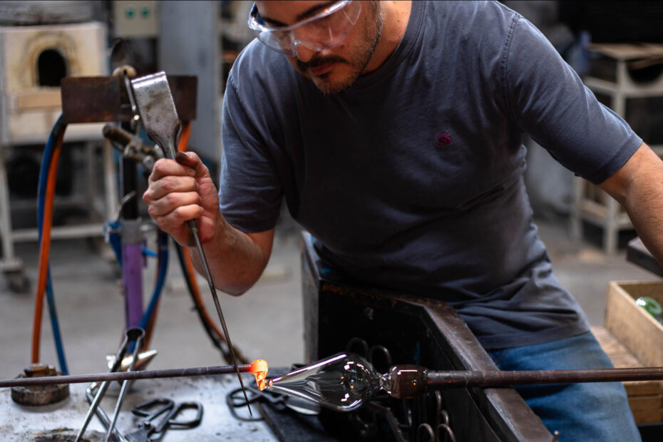 Karoline Jeuffroy dans l’atelier à chaud du Cerfav, 2022 –… ● Lire la suiteKaroline Jeuffroy : itinéraire d’une surréaliste du verre