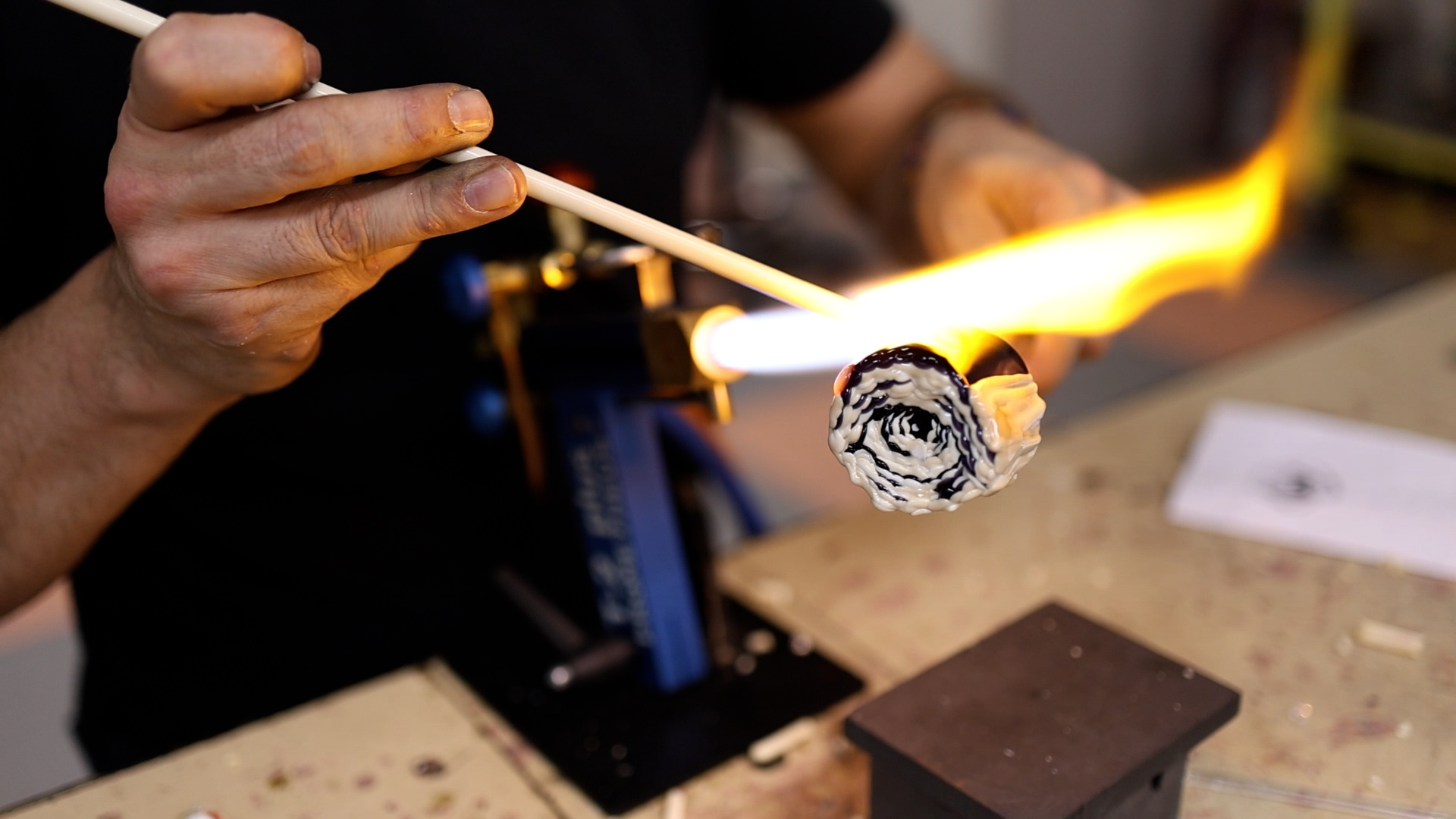 Nous vous proposons de découvrir la fabrication des yeux en murrine par Mathieu Grodet et d’observer les détails du travail du verre sodocalcique qui semble si souple à manipuler, et permet d’atteindre un grand niveau de précision.