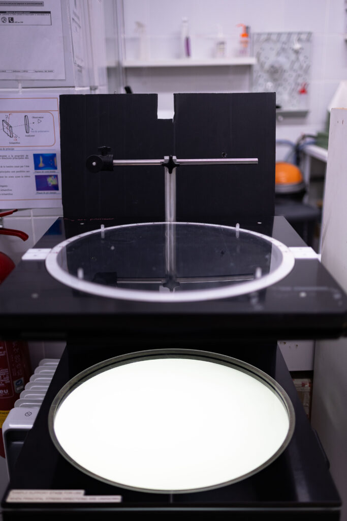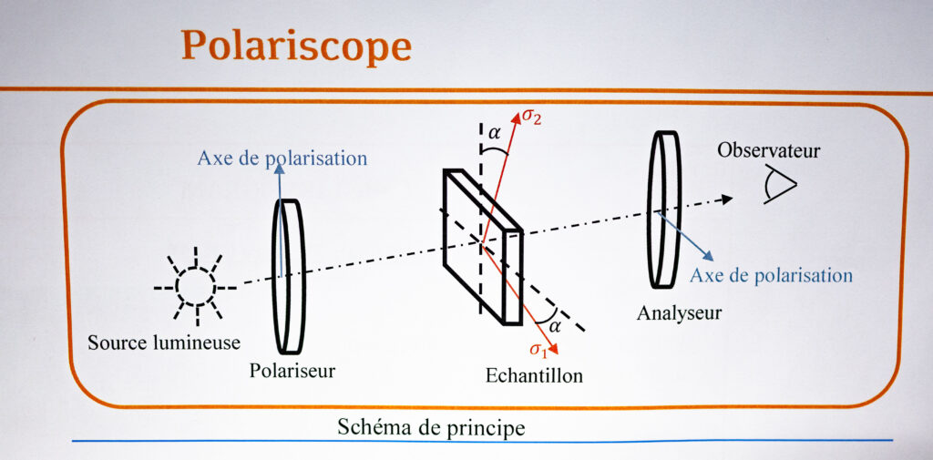 Le principe du polarimètre repose sur une idée simple : la lumière polarisée change de direction lorsqu’elle traverse un matériau soumis à des contraintes internes. En observant comment cette lumière se déforme, il devient possible de visualiser les tensions présentes dans le verre.