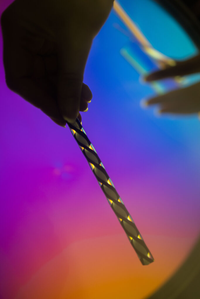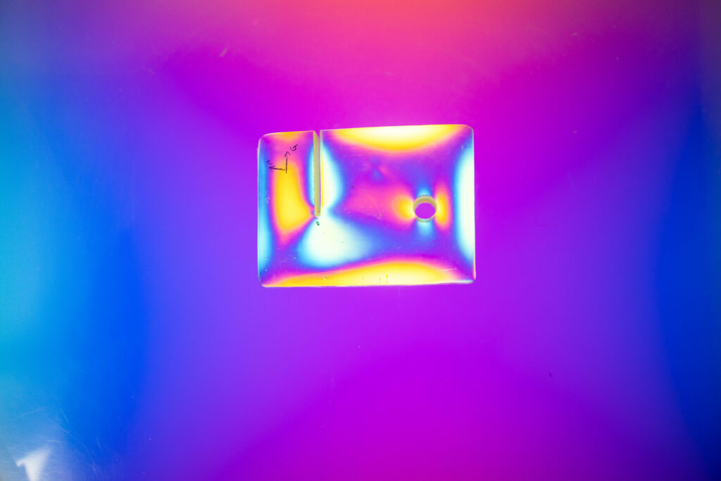 Concrètement, lorsque l’on place un échantillon dans le polarimètre, des franges colorées apparaissent. Ces teintes ne sont pas de simples reflets : elles traduisent les différences de contraintes dans le matériau. Plus les couleurs sont marquées, plus la tension interne est élevée. À l’inverse, un verre homogène et sans contraintes affichera une couleur uniforme.