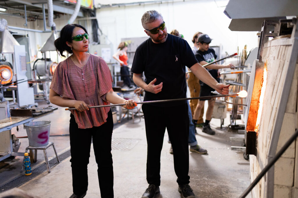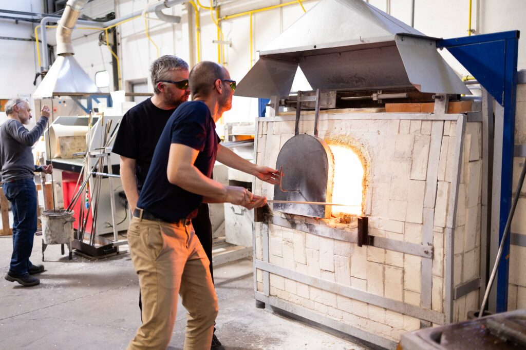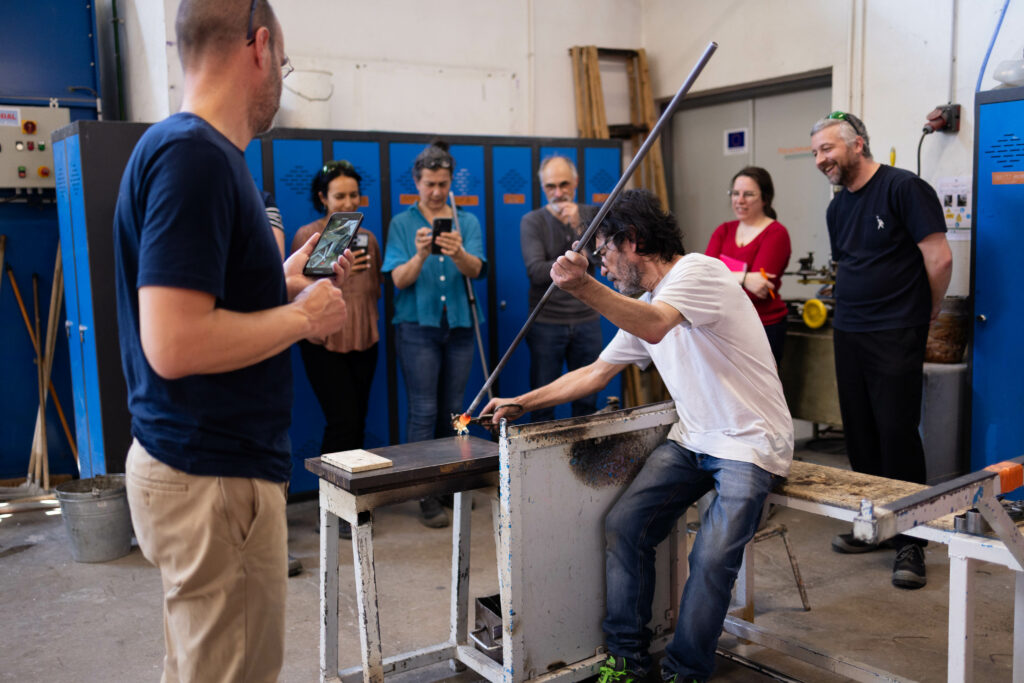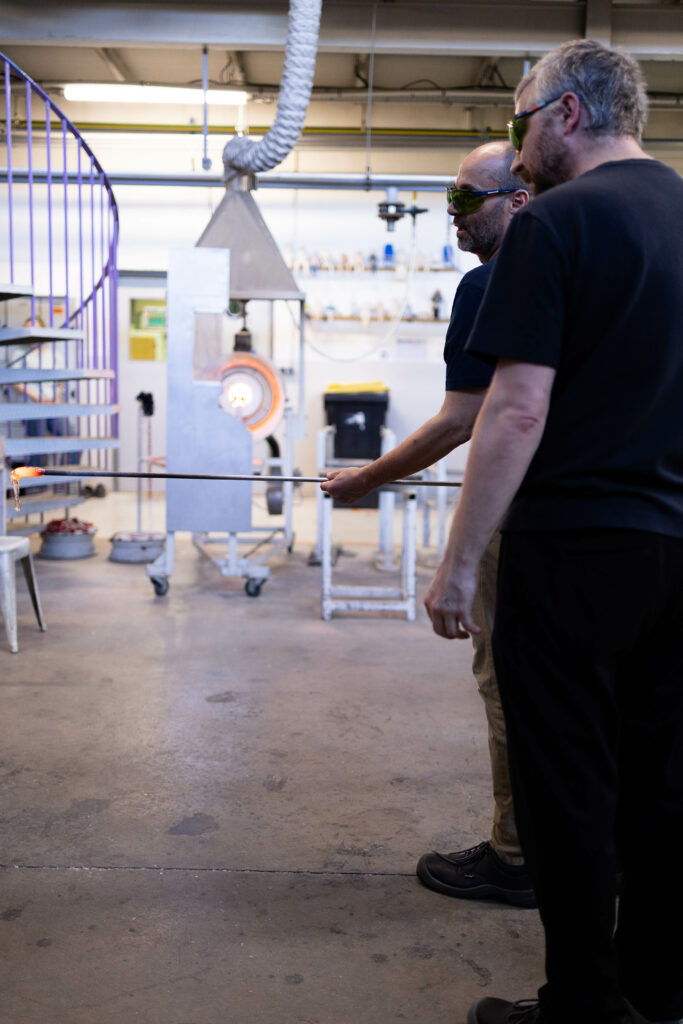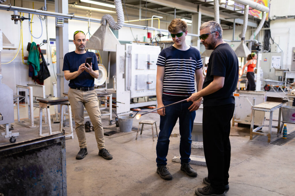 Les chercheurs appréhendent la matière verre à l’atelier soufflage du Cerfav.