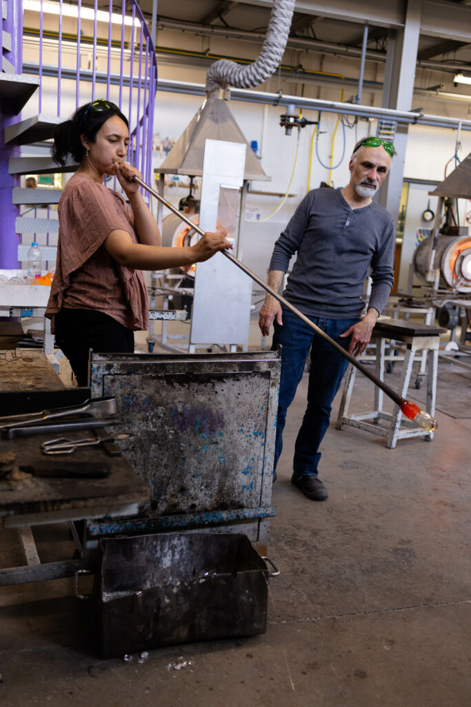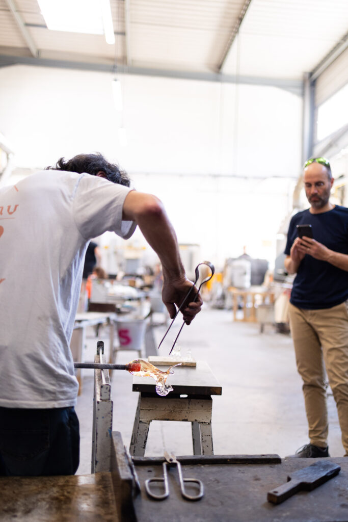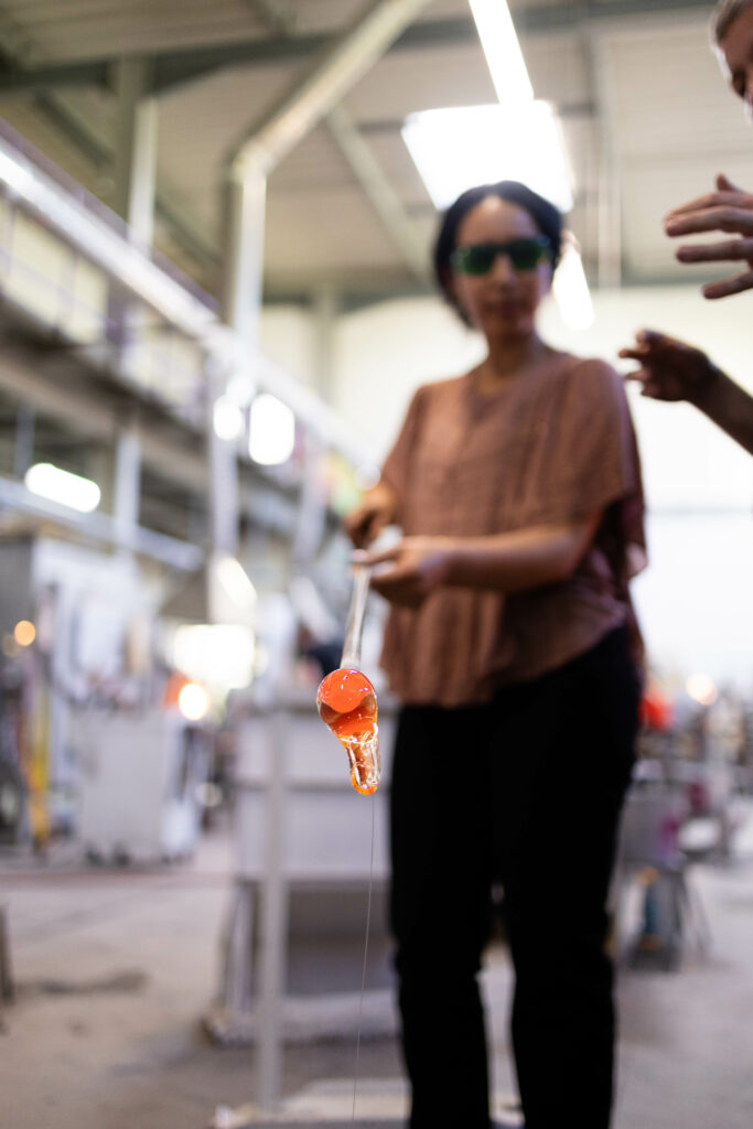 Maryam : La chose la plus importante que j’ai découverte, du point de vue d’une personne qui fait ça pour la première fois, c’est le problème de la coordination, et le fait de devoir penser à plusieurs choses, de prendre en considération plusieurs éléments dans un temps très limité en lien avec le verre en fusion. Pour une personne novice, il n’y a pas assez de temps pour réfléchir et rassembler tous les éléments nécessaires à la réussite de la tâche. C’est vraiment ce problème de coordination qui est le plus important.